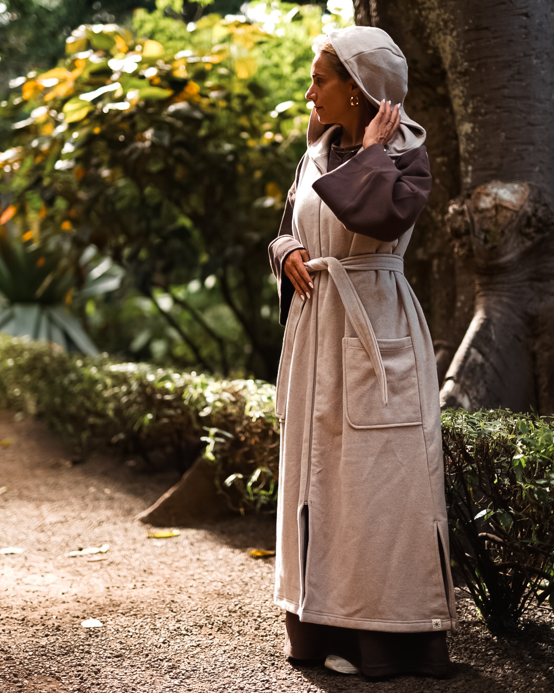 Breastfeeding-friendly wrap abaya made from 100% organic cotton