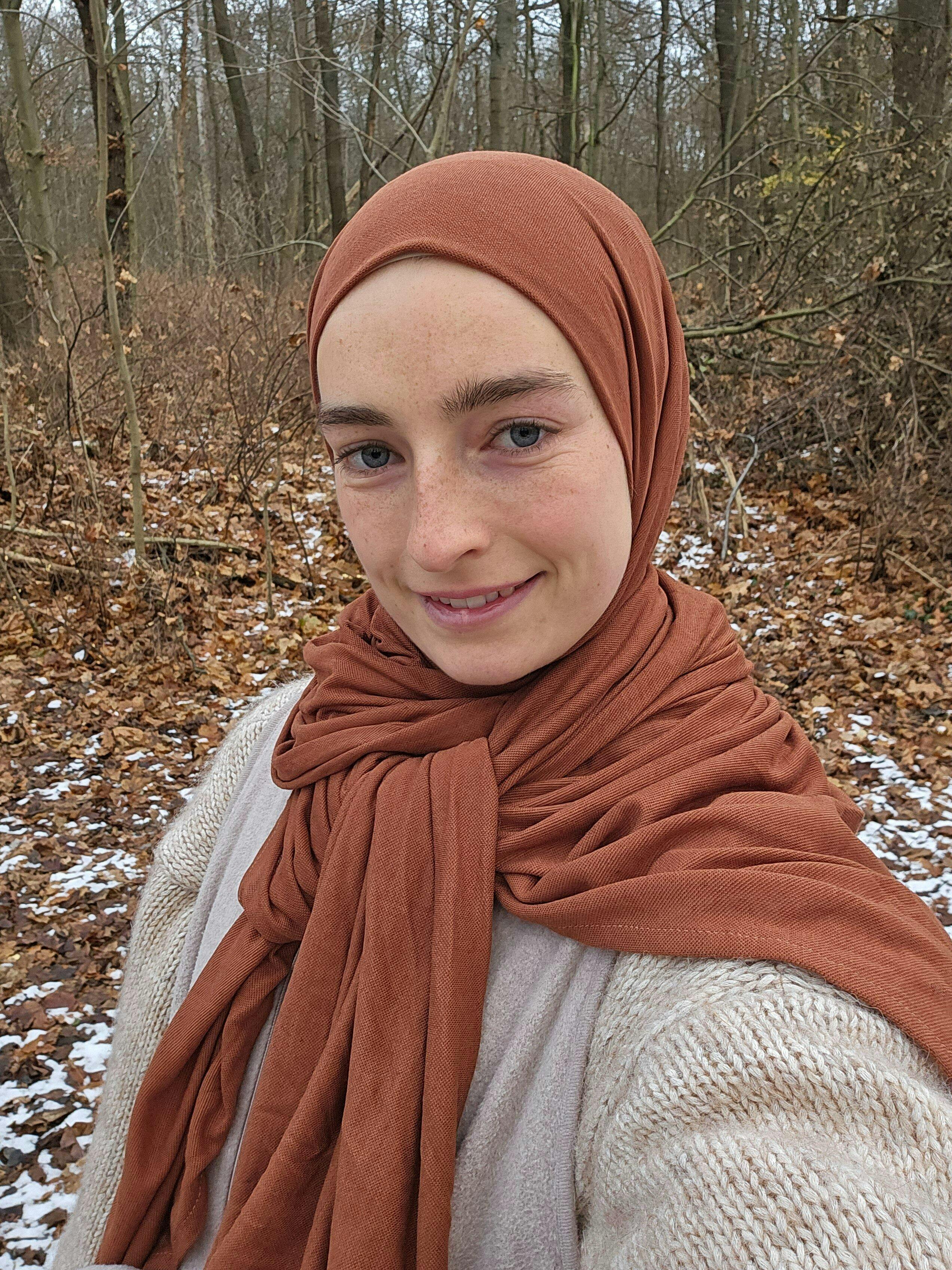I am Aurela - your luxurious organic hijab in chestnut red (XXL, 190×80 cm)